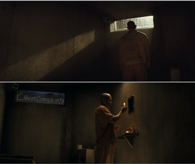 - Героем следующей сцены тоже является Убийца Крок, вырезали сцену, где герой поглощает тушу козла, которую сбросили военные к нему в камеру. В этой сцене вояки яро обсуждали происходящее.